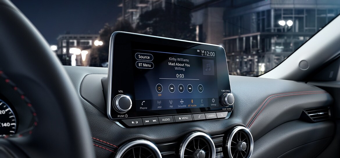 The new Nissan Sentra informs you about its performance data through its advanced driving assistance display. This display measures 4.2 inches in the S and seven inches in the new Nissan Sentra SV and new Nissan Sentra SR trim levels. Take advantage of the center touchscreen when taking this Nissan out for drives around Cincinnati. The S has a seven-inch touchscreen, while the other two trims have eight-inch touchscreens. Both versions are equipped with Apple CarPlay and Android Auto, and since they have voice recognition, you'll stay focused on the road while you adjust the infotainment system. The top two trims are enhanced with multiple USB ports and SiriusXM radio, giving you more entertainment options.