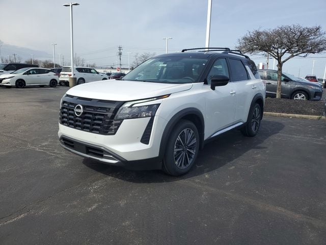 2026 Nissan Pathfinder Platinum Everest White Pearl/Black Apple CarPlay, Bluetooth, Android Auto, Heated Seats, Keyless Entry, Remote Start, Rear View Camera, Navigation, Sunroof, Touch Screen, Lane Assist, 4WD, 2nd-Row Captain Chairs, 2nd-Row Removable Centre Console, Cargo Area Protector, Cargo Net, Cargo Package, First Aid, Platinum Captain Chairs Package.