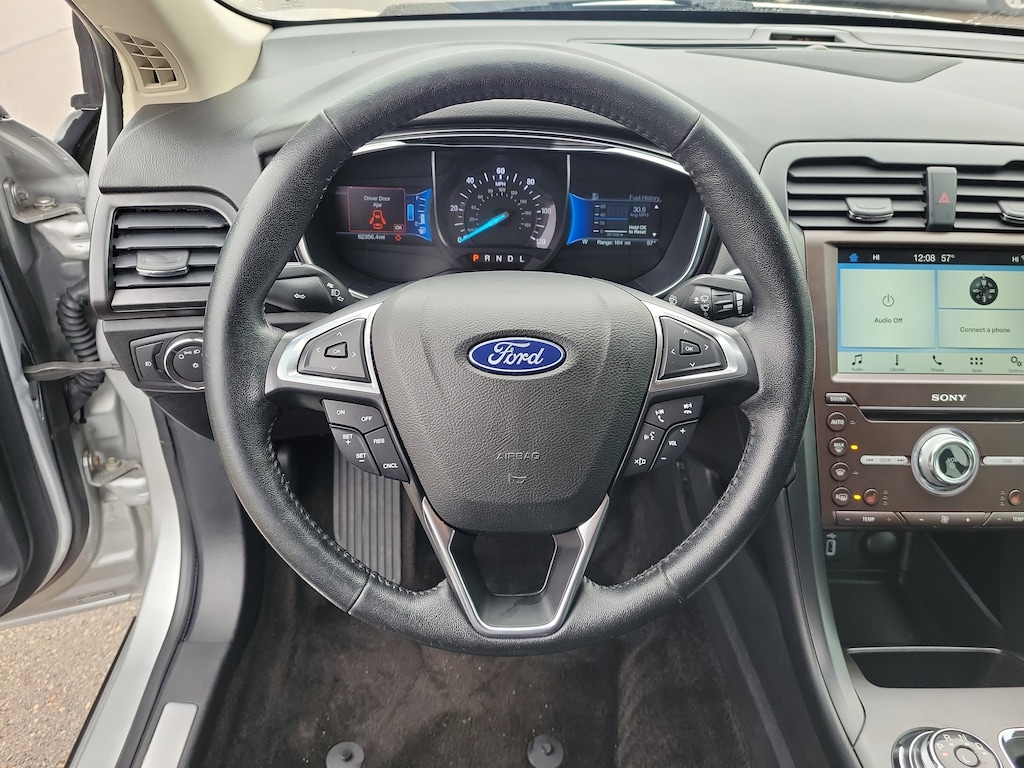 Ingot Silver 2018 Ford Fusion Hybrid Titanium FWD E-CVT Automatic I4 Hybrid Fusion Hybrid Titanium, 4D Sedan, I4 Hybrid, E-CVT Automatic, FWD, Ingot Silver, Ebony Leather, 12 Speakers, AM/FM radio: SiriusXM, Brake assist, CD player, Delay-off headlights, Electronic Stability Control, Equipment Group 700A, Exterior Parking Camera Rear, Four wheel independent suspension, Front fog lights, Fully automatic headlights, Heated front seats, Panic alarm, Power Moonroof, Rear window defroster, Speed-sensing steering, Traction control, Universal Garage Door Opener, Wheels: 18" Machine-Face Aluminum.