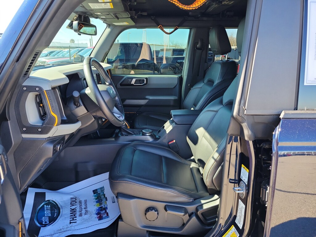 CARFAX One-Owner. Antimatter Blue Metallic 2021 Ford Bronco Badlands 4WD 10-Speed Automatic 2.7L EcoBoost V6 Bronco Badlands, 4D Sport Utility, 2.7L EcoBoost V6, 10-Speed Automatic, 4WD, Antimatter Blue Metallic, Black Onyx Vinyl, 12" LCD Capacitive Touchscreen w/Swipe Capability, 2-Door Intelligent Access w/Lock/Unlock, 360-Degree Camera, 4.7 Final Drive Ratio, Additional Sound Deadening, Ambient Footwell Lighting, Auto High-beam Headlights, Auto-Dimming Interior Rear-View Mirror, BLIS Blind Spot Information System, Brake assist, Connected Navigation, Delay-off headlights, Dr & Pass Illuminated Sliding Visor Vanity Mirrors, Dual-Zone Electronic Automatic Temperature Control, Enhanced Voice Recognition, Equipment Group 333A High Package, Exterior Parking Camera Rear, Forward Sensing System, Front Row Heated Seats, High Clearance Fender Flares, High Clearance Suspension, Information on Demand Panel, Lane-Keeping System, Modular Shadow Blk-Painted Hard/Blk Soft Top (DISC), Panic alarm, Position-Sensitive Bilstein Shock Absorbers, Power Outlet - Back Side of Center Floor Console, Rear-View Camera, Remote Start System, Reverse Sensing System, Sasquatch Package, Sideview Mirrors, Wheels: 17" Black High Gloss-Painted Aluminum.