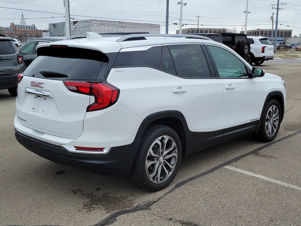 Summit White 2020 GMC Terrain SLT FWD 9-Speed Automatic 1.5L DOHC Terrain SLT, 4D Sport Utility, 1.5L DOHC, 9-Speed Automatic, FWD, Summit White, Jet Black Leather, 2 USB Data Ports w/SD Card Reader, 4-Wheel Disc Brakes, 6 Speakers, 8-Way Power Driver Seat Adjuster, ABS brakes, Air Conditioning, Alloy wheels, Auto High-beam Headlights, Automatic temperature control, Bluetooth® For Phone, Brake assist, Delay-off headlights, Dual front impact airbags, Dual front side impact airbags, Electronic Stability Control, Emergency communication system: OnStar and GMC connected services capable, Exterior Parking Camera Rear, Four wheel independent suspension, Front anti-roll bar, Front dual zone A/C, Front fog lights, Fully automatic headlights, Heated front seats, High-Intensity Discharge Headlights, License Plate Front Mounting Package, Low tire pressure warning, Occupant sensing airbag, Overhead airbag, Passenger door bin, Perforated Leather-Appointed Seat Trim, Power Driver Lumbar Control, Power driver seat, Preferred Equipment Group 4SA, Rear anti-roll bar, Rear window defroster, Rear window wiper, Speed-sensing steering, Traction control.