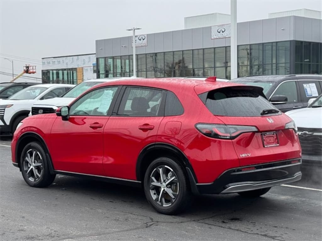 Milano Red 2025 Honda HR-V EX-L AWD CVT 2.0L I4 DOHC 16V i-VTEC Apple CarPlay, Bluetooth, Android Auto, Keyless Entry, Rear View Camera, *1 OWNER*, *LIFETIME POWERTRAIN WARRANTY*, 17" Machine-Finished Alloy Wheels, Adaptive Cruise Control: Adaptive Cruise Control (ACC) with Low-Speed Follow, Blind Spot Information (BSI) System warning, Heated Front Bucket Seats, Leather-Trimmed Seats, Power Moonroof, Steering wheel mounted audio controls.